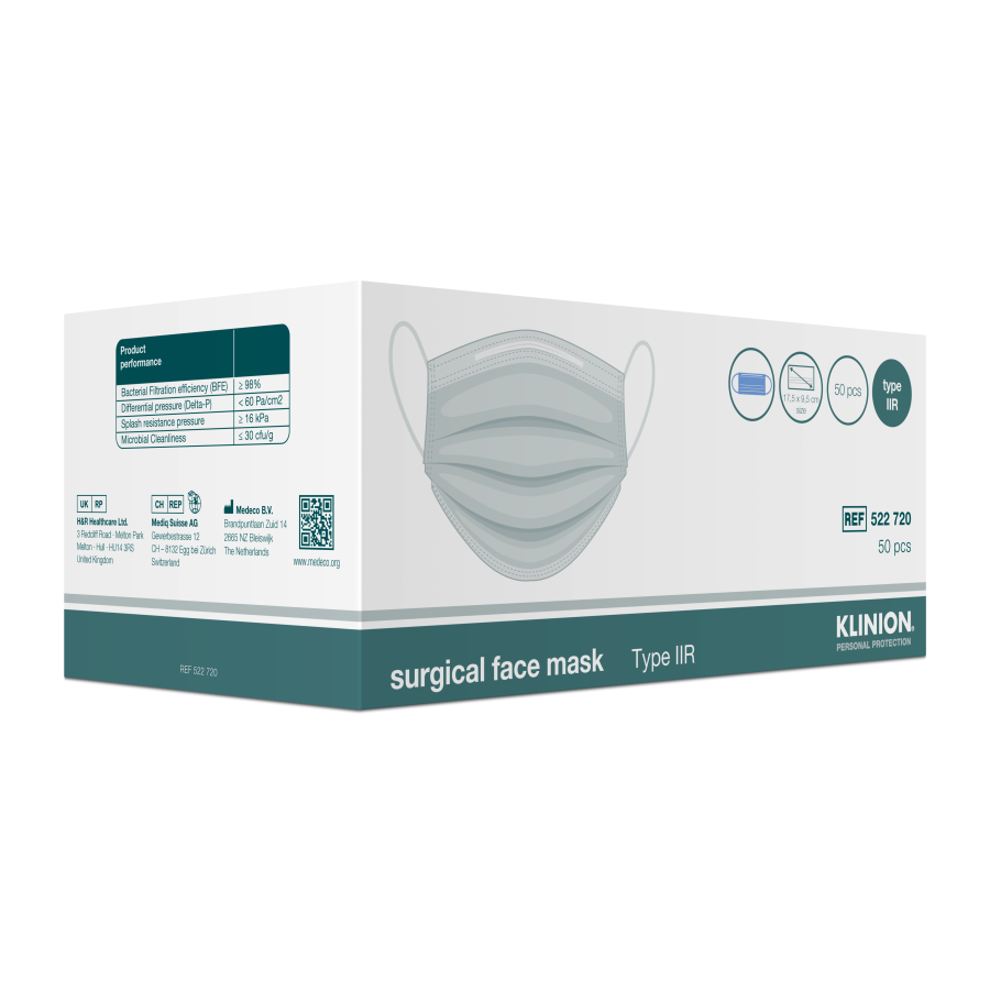 Meditsiiniline 3-kihiline ühekordne näomask on mõeldud nina ja suu katmiseks, et vähendada haigustekitajate ja hingamisteedest pärinevate osakeste levimist ümbritsevasse keskkonda. Karbis 50 maski.