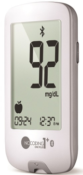 NoCoding1 Plus pakub turvalist, kiiret ja mugavat vere glükoosi in vitro (st väljaspool keha) diagnostikat, mis võimaldab saavutada täpsed tulemused väikesest vereproovist (0.5 µL) vaid 5 sekundiga. Tulemuste vahemik on 1.1 – 33.3 mmol/L. Mõõtmiseks läheb vaja värsket kapillaarset täisverd. Glükomeeter kalkuleerib ja kuvab keskmised kõigist mõõtmistest, toidueelse testi tulemustest, toidujärgse testi tulemustest ja paastu testi tulemustest viimase 1, 7, 14, 30 ja 90 päeva kohta. Glükomeeter ühildub nutitelefoniga Bluetooth abil ning kasutada saab SmartLog rakendust. Seade kasutab kahte 3.0V liitiumpatareid (tüüp CR 2032), millega saab teostada 3000 mõõtmist. Seadme mälumaht on 1000 testitulemust. Seadmel on suur ja selge 3.2“ ekraan. Glükomeeter ei vaja kodeerimist ega kalibreerimist.