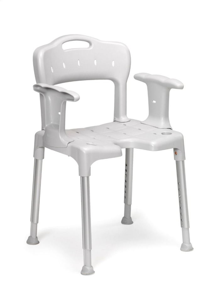 Swift - kindel ja püsiv igal põrandal. Materjaliks on valitud tugev plastik ning alumiinium, mis kindlustab dušitooli kindla püsimise ebatasastel, kaldus ja märgadel pindadel. Tooli jalgade unikaalne konstruktsioon: otsikute pehme ja hästi haarduv materjal väldivad libisemist duši all. Libisemisvastane muster istmel tagab stabiilsuse ja ohutuse – kõik vajalikud omadused kasutaja jaoks, et tunda end turvaliselt. Dušitool on mõeldud erinevate vajadustega inimestele. Võimalik on tellida lihtsalt istmena, käetugedega istmena või siis komplektse dušitoolina. Sõltuvalt kasutaja vajaduste muutumistest on istet kerge täiustada käetugede või seljatoega. Teleskoopjalgade kõrguste reguleerimine on väga lihtne.